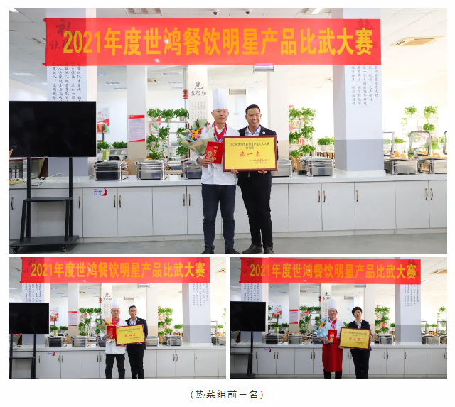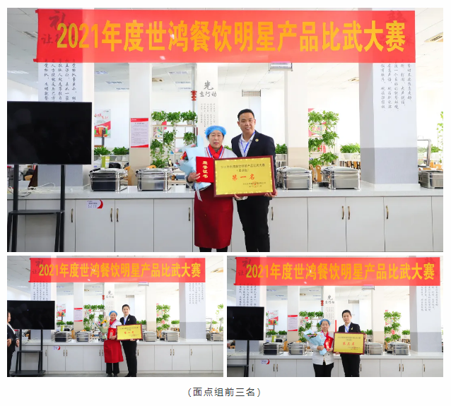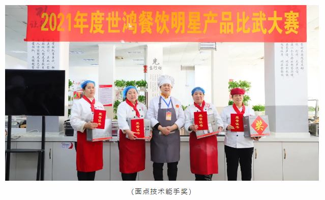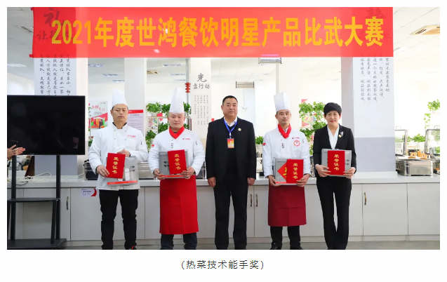 厨艺比赛分为热菜组和面点组两项比赛,每位选手都是精心准备、认真制作,激烈对决,缤纷呈现,将这一年的努力付出和用心态度都带入参赛作品中。经过评委们严谨认真的评审后最终评选出热菜组和面点组的前三名和技术能手奖。颁奖环节是最令人激动的环节,每一位获奖者由颁奖嘉宾用鲜花邀请至主席台,现场尽是大家热情的祝贺和掌声,充满仪式感的颁奖环节令世鸿的家人们开心而感动。大赛是对各项目厨艺基本功的检验,同时利用这个平台可以使大家相互取长补短,厨艺技能得以提升。新的一年,绿茵体育将紧跟时代步伐,不断推陈出新。做高品质团餐,更好的服务于社会。
